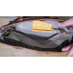 The Dooney & Bourke Florentine Vachetta Leather Monogram Logo Shoulder Tote Bag is a stylish and spacious handbag perfect for travel and casual occasions. Made of high-quality leather with a fabric lining, this large tote features a zip closure, double brown leather handles, and multicolor hardware accents. The bag is adorned with a monogram pattern and includes inner and outer pockets for organization. With its designer theme and buckle and button accents, this tote is a fashionable choice for women looking for a durable and versatile accessory.
