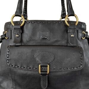 Dooney & Bourke Florentine Whipstitch Front Pocket Satchel Bag Black RARE