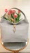 Color: gray with pale logo gold lock, bottom feet and ring on logo key charm