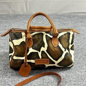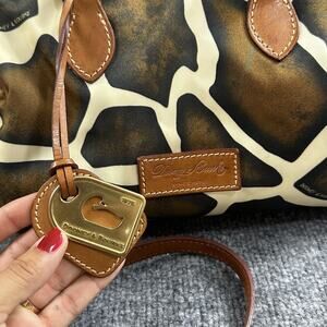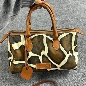 Dooney Bourke Giraffe Satchel Bag Brown Leather Trim Crossbody Strap Chic Cute