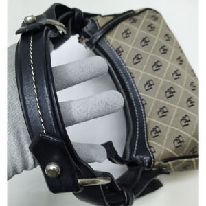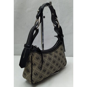 Dooney & Bourke Gray Canvas Black Leather Trim Zipp Hobo Shoulder Bag