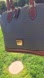 Chic and versatile satchel hand bag by Dooney & Bourke. Features a stylish gray body with tan accents. Zips to center. Top handle with 5" drop.