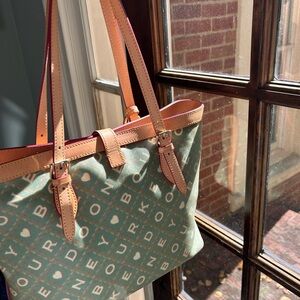 Elegant tote with iconic logo pattern. Durable leather straps. Ideal for daily use.