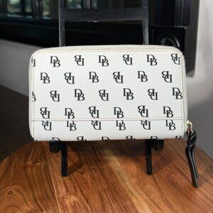 Dooney & Bourke, Gretta, Wristlet, Wallet, Clutch, Monogram, DB Logo, Coated Canvas, Zip-around, Designer, Luxury, EUC, Pre-loved, Gift