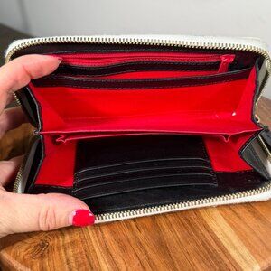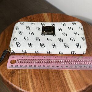 Dooney & Bourke Gretta Folded Zip Wristlet — White/Black Coated Canvas, EUC