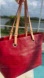 Like New Dooney & Bourke Grommet Large Red Wavy Leather Reversible Shoulder Bag Tote Shopper