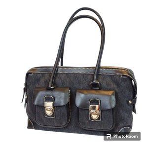 Dooney & Bourke HP65C SZ Black Melange Cotton Denim Signature Double Pocket Purse Tote Handbag