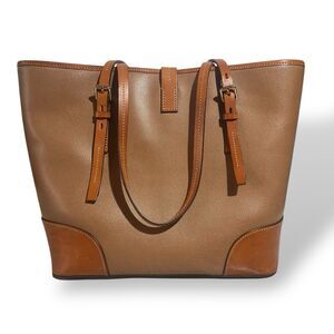 Dooney & Bourke Handbag Shoulder Bag Tote Large Tan Brown Leather Pebble Finish