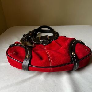 limited edition handbag, y2k designer tote, 2000s dooney purse, red suede satchel, collectible dooney bag, statement handbag, suede shoulder bag, rare dooney collaboration, luxury red suede purse, early 2000s fashion, vintage designer accessory, dooney bourke collectible, holiday statement bag, y2k luxury handbag