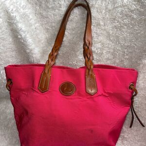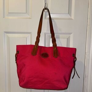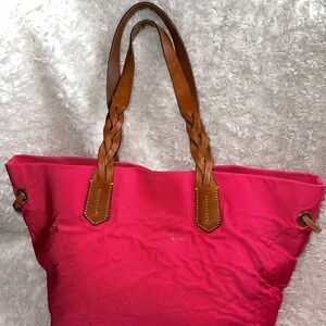 Dooney & Bourke Hot pink Nylon large tote bag with leather tan straps & accents