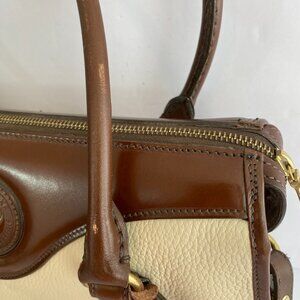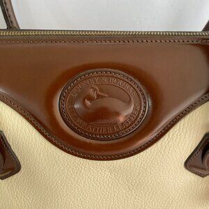 Dooney & Bourke Ivory Brown Pebbled Leather Barrel Satchel Bag