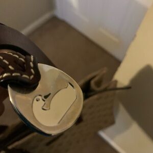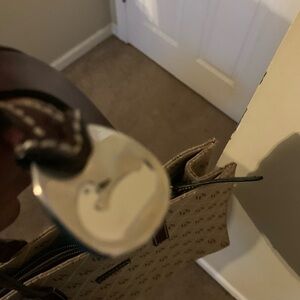 Prelovedx tote- looks likee new. No rubs. Small amount of tarnishingh on hardware the . See pics. Size 13x10x4 inches.