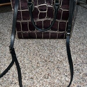 Dooney & Bourke Janine Crocodile Embossed Leather Satchel Handbag Purse Brown