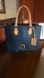 Double handles, magnetic snap closure, interior zip pocket, slip pocket, and a key hook with Duck keychain and comes with Dooney Tag.