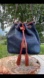 Made from a very pretty shade of dark navy blue Pebble Grain Leather that has been treated for water repellency, white contrast stitching, silver nickel hardware, this cute bucket bag measures approximately 8 1/4” wide, 9” high and 6 1/4” deep with a highly adjustable 3 piece, 25” shoulder strap. By removing, or adding the center section of the strap, this purse can be worn on the shoulder, or as a crossbody.