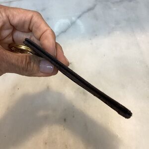 Sleek black wallet with a gold keychain, perfect for organizing your identification in style.