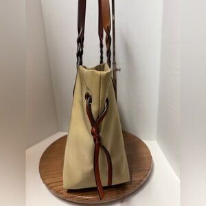 Dooney & Bourke Khaki Italian Nylon Shopper Tote Braided Leather Double Handles