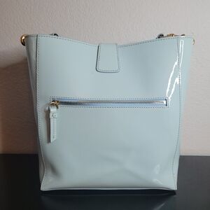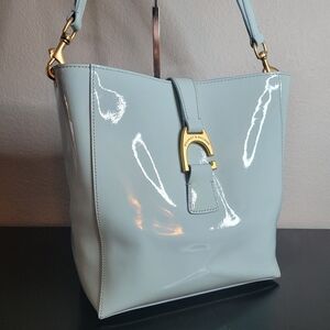 Measurements ApDooney & Bourke Lana Patent Leather Bucket Shoulder Bag Light Blue *FLAWS* As Isproximately