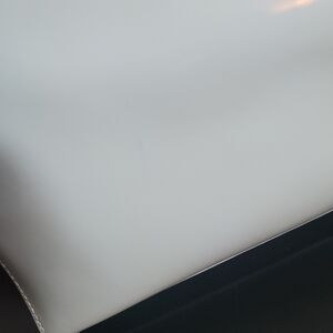 Good used condition with some minor imperfections ,light marks and factory glue residue marks .overall looks great Very clean the color is light blue.
