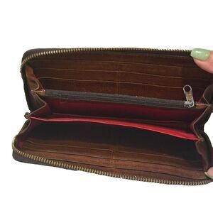 Dooney & Bourke Large Brown Leather Zip Around Clutch Wallet Rustic Vintage