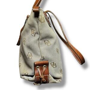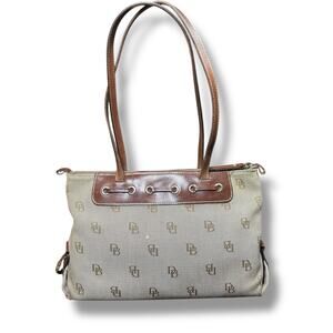 dooney & bourke shoulder bag canvas tote tassel zip top y2k beige brown purse vintage