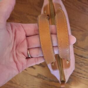 Beautiful chic pink shoulder bag with tan accents and tassels. Features sturdy straps and tassel details. Ideal for daily use.