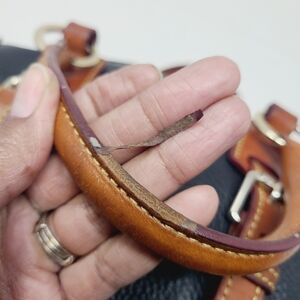 Excellent pre-owned condition overall; ink mark on top back and some wear on leather and inside lining in places. Please see close-up pics for more details. Bag comes in a Dooney & Bourke duster bag.