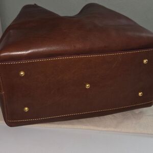This luxe shoulder bag, made from rich Italian Vacchetta leather that grows softer in time, has enough room for everything from work to travel.