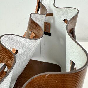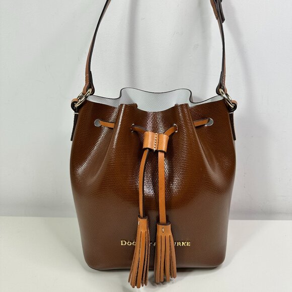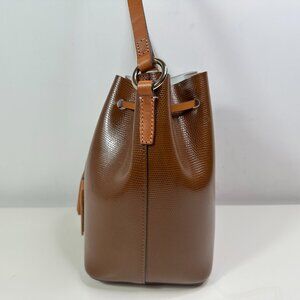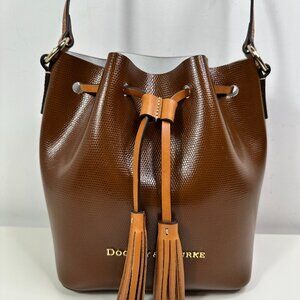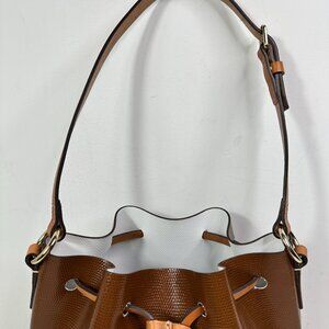Dooney & Bourke Leather Drawstring Bucket Shoulder Bag Brown/Cream.