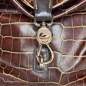 Dooney & Bourke Leather Hobo Bag . Croco Embossed leather. Bag measures 17" wide by 12 " high without the shoulder strap. Purse was purchased in 2012. Possibly never used. It is in NEW condition. The bag is in a protective bag. Smoke free home.