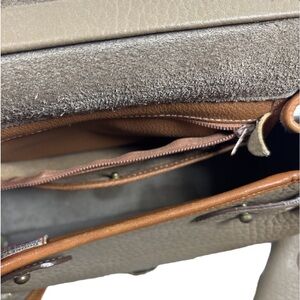 Due to this purse being vintage it does have signs of wear some stains on the inside of the purse & most of the hardware has some blue-green verdigris (could be cleaned with the right polish) there are not tears or rips.