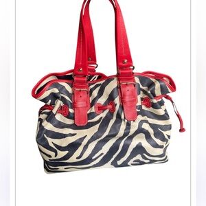 Dooney & Bourke Leather Zebra Print Large Drawstring Shoulder Bag/Tote,EUC