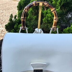 Dooney & Bourke (Made in Italy) Vintage White Leather Bamboo Handle Backpack