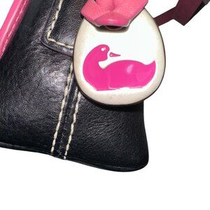Dooney & Bourke black leather shoulder bag with a pink strap and a heart buckle. Vintage, in excellent condition.