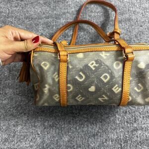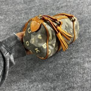 Dooney Bourke Mini Barrel Satchel Brown Logo Canvas Leather Heart Charm Y2K