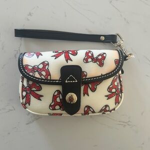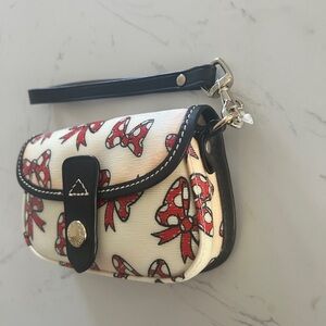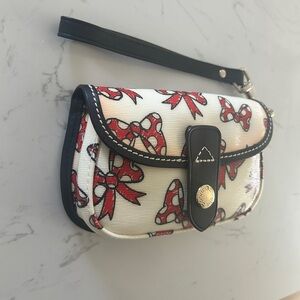 Dooney & Bourke Minnie Bow Wristlet – Polka Dot Red Bows, Coated Canvas- EUC