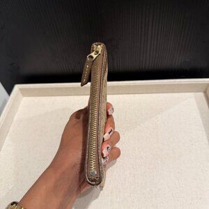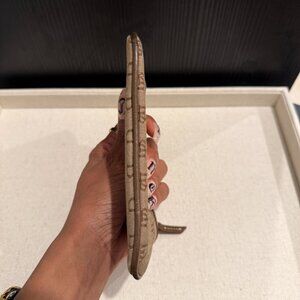 This Dooney & Bourke key case features the signature DB monogram in tan canvas with matching leather trim, offering a timeless and compact design perfect for everyday use. Lightweight and functional, it’s ideal for holding keys, cards, or small essentials while adding a touch of classic Dooney style.