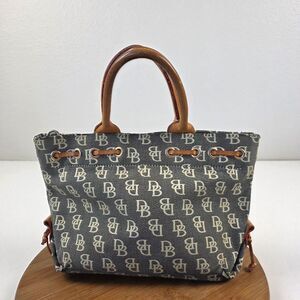 Dooney & Bourke Monogram Tassel Tote Canvas & Leather Double Handle Vintage Y2K