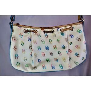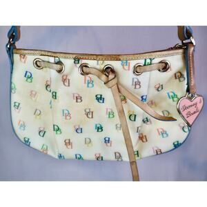 Dooney & Bourke DB Vintage Y2K One Strap Shoulder Purse Bag Small Cream Rainbow Zip. Condition is "Pre-owned". Please notice small flaws on leather rope (Back of the purse)