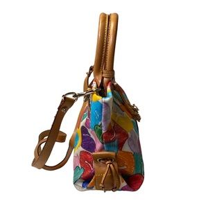Dooney and Bourke multicolor crossbody purse Two pockets on each side of bag Magnetic closure Removable adjustable strap 5" in depth 7" in height 12" Wide Great condition