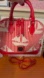 Chic satchel with red and cream sailboat pattern. Features sturdy handles and detachable strap.