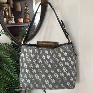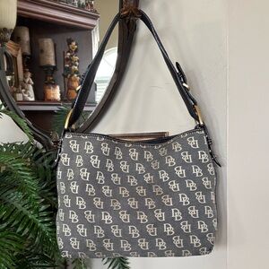 Dooney & Bourke Navy Blue & Cream Logo Canvas Hobo Purse Shoulder Bag Leather