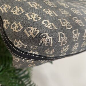 Dooney & Bourke Navy Blue & Cream Logo Canvas Hobo Purse Shoulder Bag Leather Trim.
