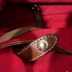 eatures an adjustable shoulder strap, drawstring top with leather tassels, interior zip pocket, key leash, and signature Dooney & Bourke leather patch.