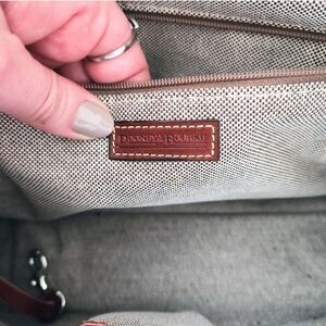 Dooney & Bourke Neutral Canvas Double Push Lock Pocket Satchel, 7.5x13x5
