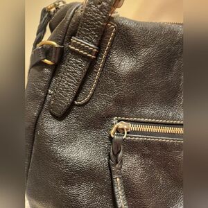 Dooney & Bourke "Nina" Black Pebbled Saffiano Leather Satchel/Shoulder Bag