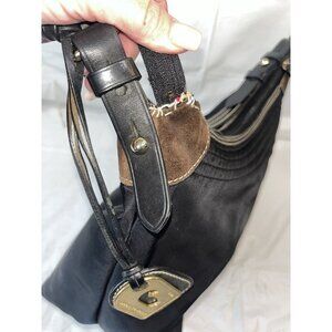 The suede leather where the strap attaches to the bag had loose threads and has been repaired.