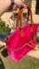 • Color: Hot pink with tan leather accents and gold-tone hardware