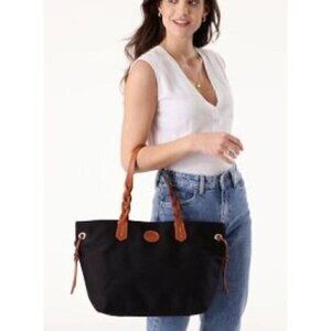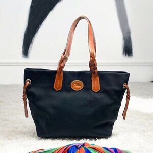 Dooney & Bourke Nylon Shopper Tote Black/British Tan Serial# M0255853 NWOT