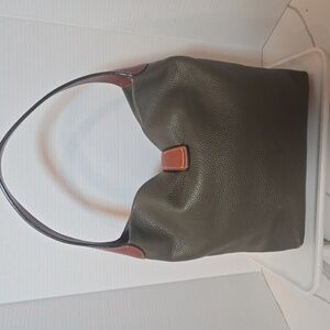Dooney & Bourke Olive Green Pebbled Leather Slouch Logo Lock Shoulder Bag